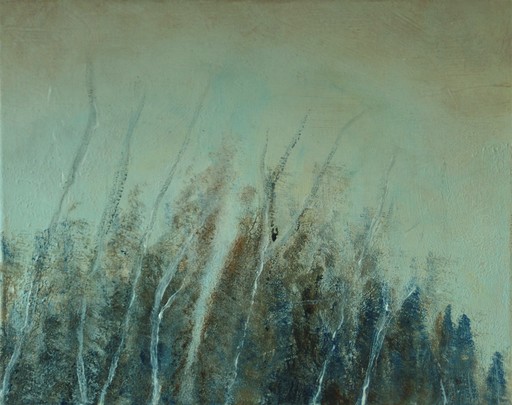 Dit gegeven is de thematiek van deze collectie. De wandeling als metafoor voor de levensweg en de verafgelegen plek als ultiem doel. Mijn fascinatie voor de verafgelegen plekken heeft zich langs een bepaalde lijn ontwikkeld. In eerste instantie ben ik begonnen met het schilderen van landschappen zoals ik ze zag tijdens het wandelen. Het waren landschappen die je visueel kan betreden. Later heeft een verschuiving plaats gevonden van dit visueel kunnen betreden van een landschap naar het slechts aanschouwen van een landschap. Ik kwam tot inzicht dat je, als je een plek aanschouwt, je zelf ook op een plek staat. Deze plek, waar je staat, zie je dan niet meer, omdat je ogen gericht zijn op de verafgelegen plek. Het gaat dus niet om het daadwerkelijk betreden. Alleen dan blijft de magie bestaan, niet als je op de plek bent aanbeland. De magie is dan verdwenen. Ik wil die magie in stand houden.